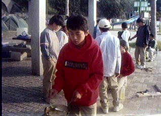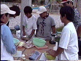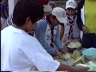 準備も手際よく........ 八代もキャベツをきって....... 中本の笑顔が........ すてきだぁ〜