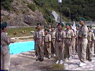 当番班はチェリー班だ! 川北班長頑張って ! 国旗掲揚とソングで開会式が始まった。