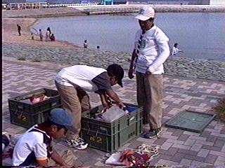 午前9時団倉庫にて装備積み込み後、浪早ビ−チへ移動。