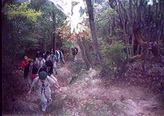 中村と岡野の足が早く、道先案内人のやたがらすのようだった。(笑)しかし、足元が本当に悪い。行けども行けどもアップダウンが激しいコ−スだ。故障者がでないことをずっと祈りながら歩いている。