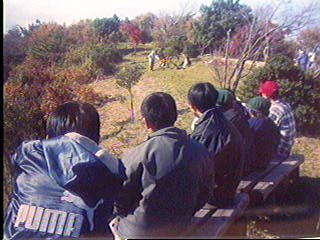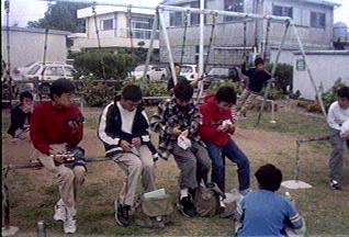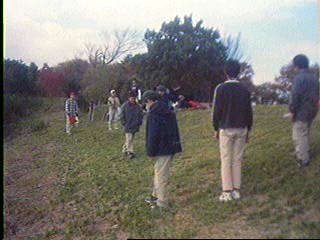 上班と副長達は班員に手旗を読ませている。青少年の森の広場へ全員で。