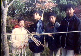 それから、ちじめ結びを教えるのに丁度いい木が数本立っていたので、無理矢理ロ−プワ−ク。