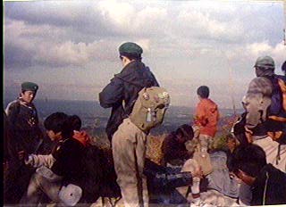 時間はもう9時だ。 ハイキン グ章を取るために野帳を何人かが頑張っている。