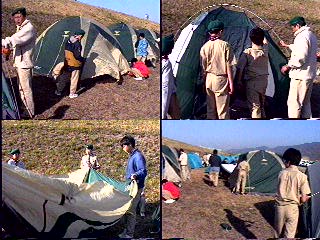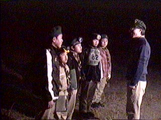 真夜中は非常に寒い。 スカウト達のテントを点検後やっと就寝だ。