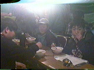 八代SCもうどんを食べて元気になり、みんなと一緒にテントへ戻る。