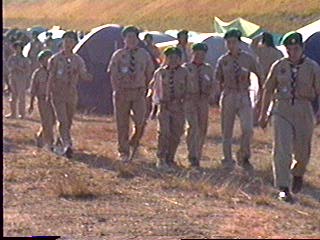 8時過ぎ点検のため、整列をするスカウト達。