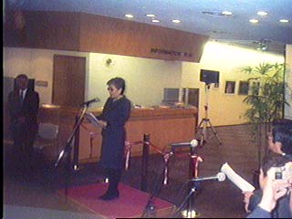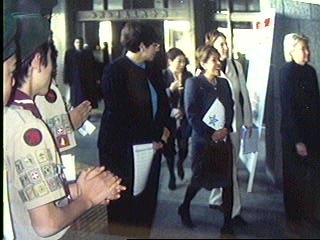 ☆県民文化会館の県民ロビーにブッシュ夫人が秘書とSPに囲まれて来場しました。