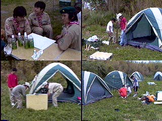 スカウト達を送り出してから団倉庫へ装備の積込みを済ませ、 ス−パ−経由で10時半にキャンプサイトへ 11時過ぎ、スカウト達はつぎつぎと到着し、休憩を。