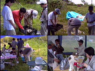 石橋上班の指示で食堂等をレイアウトし、テ−ブルや椅子そして竃を設置した。