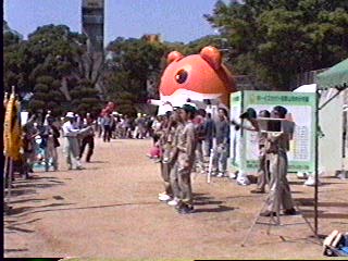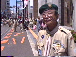 5月 5日子供仲良祭、和歌山城砂の丸広場で菊スカウトの表彰を受ける岩崎班長。