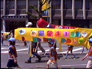 コースは城北小学校⇒本町3丁目⇒京橋⇒公園前⇒市役所前へとパレ−ドが行われた。