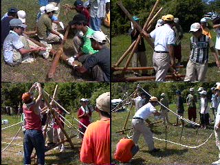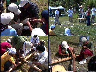 重い丸太を縛るにはかなりの労力が要ることがわかったかな!