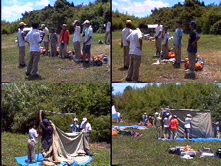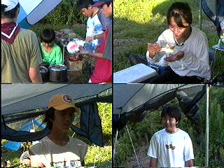 12時過ぎ、団子状態でイーグル、コンドル、ホークスが到着。 早速昼食と設営を.....