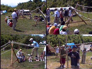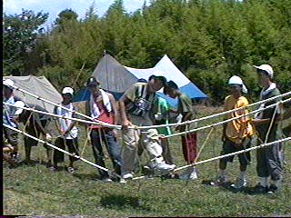 午前9時 朝の課業 ラッシング モンキーブリッジ製作。
