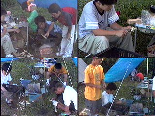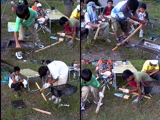 時間があったので、立ちかまど製作や明日の釣竿作りの工作をして楽しんだ。