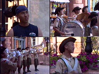 マリーナシティにあるポルトヨーロッパの中の噴水前広場でロスアンゼルスからきたラッパ鼓隊を見学だ!
