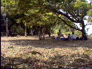 この大きな木陰の下で、全員で昼ご飯を。 とても気持ちのいいところだ!