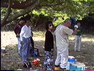 1999年7月11日草刈り当日、2団と21団双方あわせて28名もの草刈り奉仕人が北畑団委員長の呼び掛けでここ浦島キャンプ場に集まってくれた。