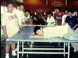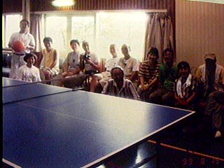 天気が雨になってきたので、午後のプログラムは、卓球大会を開催して楽しんだ。