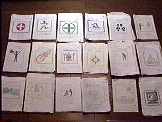 特に川北班長のレポートは文字も奇麗でいつも丁寧に仕上げている。通信 結索 野外料理 読図 ハイキング章は報告書の書類を独自に製作して利用しています。そして野帳の書類も製作しています。