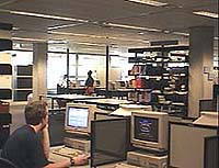 ![]() ティルブルグ大学 電子図書館の環境で、世界的に有名な図書館 1フロアに約400台のコンピュータがあり、 ネットワークと大学の情報センターに接続している。 |