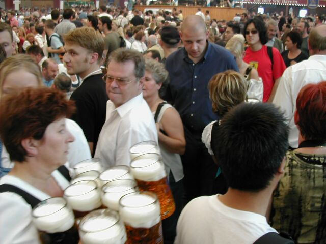 一人で一度に1g×10個ものジョッキを運びます。