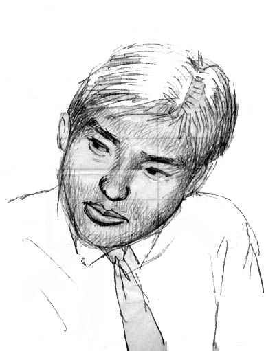 色紙の下絵。いつもネクタイをきちっとしていたKさん。私としては当人の雰囲気が出ていて気に入ってます。適当な紙の裏に描いているので桝目やら折れ線が入っててすいません。