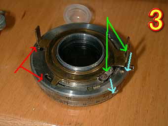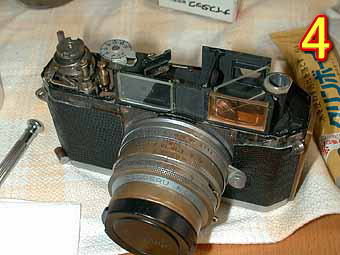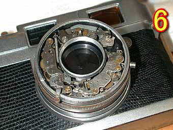 今回は、ペトリの異端児オートメイトの分解です。私も手に入れるまでは、聞いたことのない機種でした。大きな特長としては、倍率の高いアルバタ式ファインダーと外見的にはM3を思わせるところです。ただ内部的に見ても従来の35シリーズとあまり変化がありません。 写真1は、ヘリコイドブロックとシャッターユニットを外したところです。1がヘリコイドブロック、2がシャッターユニットです。写真2、3で紹介するようにここにペトリの特長と故障の原因になる部分が見ることができます。 写真2は、ヘリコイド部を見たところです。赤矢印のレバーはシャッターボタンへ連動、緑矢印の部分がシャッターチャージ部へ連動しています。この部分は非常に良く作られており故障はまず無いです。 写真3は、シャッターユニットとそれに付随するリングです。赤矢印部分がシャッターボタンに連動、緑矢印がシャッターチャージに連動する部分です。このチャージ部分がペトリカメラの内部的な特長になり、故障の多発する部分になります。チャージ動作を説明すると青矢印方向にチャージ用リングが回転します。そうするとシャッター内部と連動するチャージ用レバーが青矢印方向に上にあがりシャッターをチャージすることになります。このチャージ用レバーの中に見えるネジが使っているうちに緩んでしまいやがてチャージができなくなってしまいます。たいていこの部分が巻き上げだ出来てもシャッターが切れないというトラブルの9割以上の原因になります。へまをするとこの部分のネジが完全に外れていることもあります。ただこの部分まで分解するには、非常に知恵が必要で非常に苦労をしますので分解初心者の方は手を出さないほうは無難です。はっきりいって私もかなりいつでも苦労しています。へたに後群のリングを力を入れて外すと部品が簡単に変形しますし、最悪部品が完全に折れてしまい完全なジャンクとなってしまいますので注意が必要になります。 写真4は、トップカバーを外したところです。美しいアルバタ式ファインダーの中身がみることが出来ます。トップカバーを外しただけでも十分ペトリの独自性を感じることが出来ます。 写真5はファインダー部を拡大したところです。赤丸部分で距離計の調節をするのですが非常にやりにくいカメラでもあります。おまけに良くくるいます。ここがペトリの醍醐味ですか(笑 写真6は、ペトリ自社制のシャッターの内部です。やはりシャッターメーカーのシャッターより構造的には雑に思えます。細かい部分での故障も多いです。 最後にペトリの悪口ばかり書いているように思えますが実は個人的には非常に好きなメーカーです。個性的なラインナップにペトリのよさを感じています。今の時代まで残っていたらどんなカメラを作っていたと思いますか? |