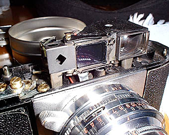 | リコーJETと同じカメラなのになぜかリコー500のネームを持つ多分輸出用であると思われるリコー500を紹介していきます。特徴は何故かブライトフレームファインダーになったために非常に軍艦部が高くなったことです。果たして中身は? | ということで中身はこんな感じになっています。高床式の倉庫を思い出させるようにファインダーブロックが高くなっています。なぜこんなことになったのか私にはわかりません。従来のリコーのシステムで問題ないと思われますので? |