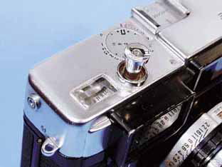 セレン受光部上部から見る。 ピョコンと飛び出すシャッターボタン(飛び出し後) メーターにも絞り値がついた。 |
