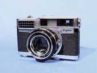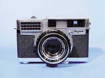 レンズ: フジノン45mm F1.9(4群6枚) シャッター: シチズンMLT(B、1〜1/1000),セルフタイマー内蔵 シンクロ: MX接点 ファインダー: 採光式ブライトフレーム 焦点調節: ノブ式直進繰り出し、距離計連動 露光調節: セレン光電池使用連動式 フィルム送り: 底部レバー巻き上げ、クランク巻き戻し フィルター: 35、5mmネジ込み 寸法: 138×95×87mm 重量: 770g 発売: 1959年(昭和34)12月発売 価格: 25500円 |