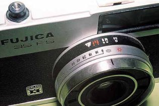レンズ: フジノン35mmF2.8(3群4枚) シャッター: 晴れ表示1/250,曇り表示1/30 シンクロ: X接点、ホットシュー付き ファインダー: 採光式ブライトフレーム 焦点調節: 前玉回転、目測、4点ゾーンフォーカス 露光調節: CdSシャッター優先EE フィルター: 49mmネジj込み フィルム送り: レバー巻き上げ、クランク巻き戻し 寸法: 120×76×55mm 重量: 349g 発売: 1971年(昭和46年)9月 価格: 19300円 |