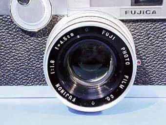 レンズ: フジノン45mm F1、8(4群6枚) シャッター: シチズンMLT(B、1〜1/1000),セルフタイマー内蔵 シンクロ: MX接点 ファインダー: 採光式ブライトフレーム 焦点調節: ノブ式直進繰り出し、距離計連動 露光調節: CdS使用連動式 フィルム送り: レバー巻き上げ、クランク巻き戻し フィルター: 52mmねじ込み 寸法: 148×90×68mm 重量: 792g 発売: 1964(昭和39)年9月発売 価格: 23800円 |