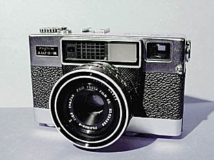 レンズ: フジノンR47mm F2、8(3群4枚) シャッター: コパルマジック B、1〜1/500 シンクロ: MX接点 ファインダー: 採光式ブライトフレーム 焦点調節: 前玉回転、距離計連動 露光調節: セレン光電池使用AE,マニュアル可 フィルム送り: レバー巻き上げ、クランク巻き戻し フィルター: 35、5mmネジ込み 寸法: 140×88×73mm 重量: 720g 発売: 1962(昭和37)年3月 価格: 16000円 |