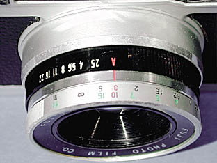 レンズを見る。 フジノン38mm F2、5である。独特の描写をする。 |