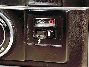 シャッター速切り替え部を見る。 くもりのほうがストロボの同調速度である。 |