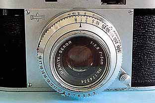 ランタン系新種ガラス使用 シャッター: セイコーシャMXL B、1〜1/500 シンクロ: MFX接点切り替え(フルシンクロ) ファインダー: 逆ガリレイ式ファインダー、ブライトフレーム付き、倍率0、62倍 焦点調節: 直進ヘリコイド距離計連動 フィルム送り: レバー巻き上げ(180度)、ノブ巻き戻し フィルター: 寸法: 77×130×69mm 重量: 702g 発売: 1957(昭和32)年7月 価格: 19800円(ケース付き) |