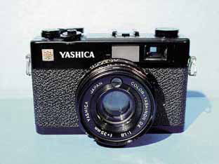 レンズ: カラーヤシノンDX35mm F1,8(4群6枚)、レトロフォーカスタイプ シャッター: コパルエレク電子シャッター、00番、2枚羽根、B、オート(約8秒〜1/250),マニュアル(1/30), セルフタイマー シンクロ: X接点 ファインダー: 採光式ブライトフレーム、0、481倍、パララックス自動補正 焦点調節: 直進ヘリコイド距離計連動 フィルム送り: レバー巻き上げ、クランク巻き戻し フィルター: 寸法: 120×74×59mm 重量: 550g 発売: 昭和45(1970)年12月 価格: 29800円 |