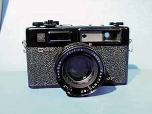 | エレクトロ35ゴールドメカニカをブラックボディにしただけのモデルである。GTという名前が与えられた。このあとのエレクトロ35シリーズは、小改造を加えて新しいネーミングを与えるカメラがいろいろと発売される。GTと言うと車のGTを思い出す。やはりGTという名与えられるとかっこいいイメージがある。中古市場では、たくさん見ることが出来る。非常に売れたカメラである。 | ||
