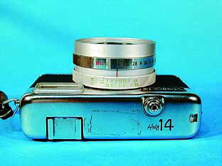| ハーフサイズのなかで1番の大口径レンズF1、4をつむカメラである。時代的にレンズの明るさ勝負であったためこんなカメラが生まれたわけです。基本的にはハーフ17と同じであるがシャッター等少々の変更が加わっている。メーターもcdsにかわり露出の安定性も良くなった。ただスタイル的にいくと大口径F1、4レンズがボディの真ん中にドカンとついている付いているので少々不格好である。 | ||