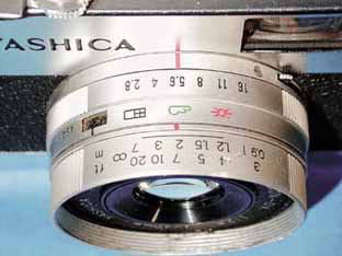 レンズを見る。 ヤシノンDX40mm F2、8 準広角である。 |