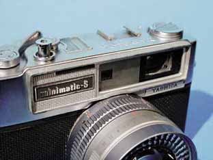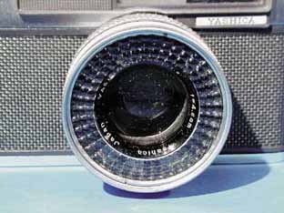 | 正面から見る。 ほぼヤシカ35EEと同様の顔つきをしている。 |
