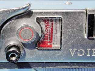 巻き上げ部から見る。 くわえ込み式EEの為、シャッターボタンが飛び出している |