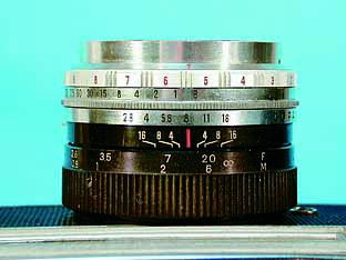 レンズを見る。 ヤシノン45mm F2、8である。 |