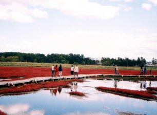 ■卯原内の木道 卯原内の群落では本当はなかなか近づくことのできないアッケシソウの側まで木道で行くことができます。 周り中アッケシソウに囲まれ幸せを感じます。 観光客がたいへん多いところですので写真撮影のため木道を降りる人がいますがそれだけは絶対にやめてください。 湿地が少しづつ裸地と化してしまいます。
