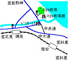 (交通:網走駅-バス-モヨロ入口-バス-潮見団地・東京農大)