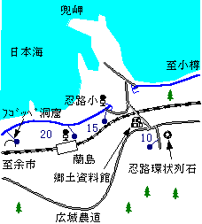 (交通:小樽-JR[22分]-蘭島-JR[6分]-余市/小樽-バス[21分]-忍路小-バス[2分]-蘭島-バス[8分]-余市)