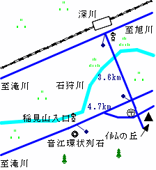 ■音江環状列石こちらは忍路に比べると規模の小さいストーンサークルです。 森の中の草原に小さな石が環状に置いてあります。 ストーンサークルと言われなければキャンプ場のかまどの跡と勘違いする人もいるかもしれません。