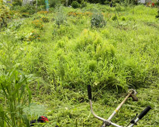 エンジン刈払機チップソウで草刈りしてから、そんなに経っていないと思ったが、また、草だらけ