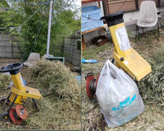 待ってから粉砕機に慎重に少しずつ投入していくとゴミ袋に入れても大丈夫な大きさになって何とか無事ゴミ出しできた(^^♪。